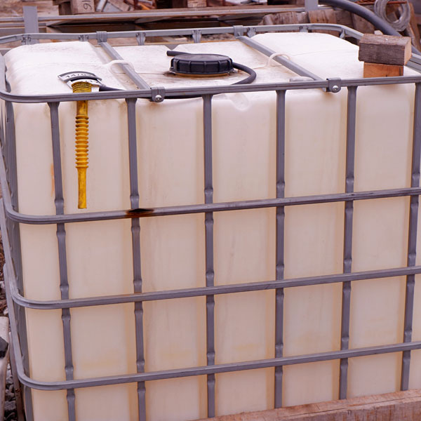 Для заливки жидкости используется горловина с бункером, размещенная в верхней грани. Вода, дизельное топливо или другие жидкости могут заливаться в емкость как самотеком, так и под давлением. Сливной патрубок размещается в одной из боковых стенок куба. Такая конструкция обеспечивает максимальное опустошение емкости. Для полного слива может быть использована специальная горловина, расположенная в днище емкости.